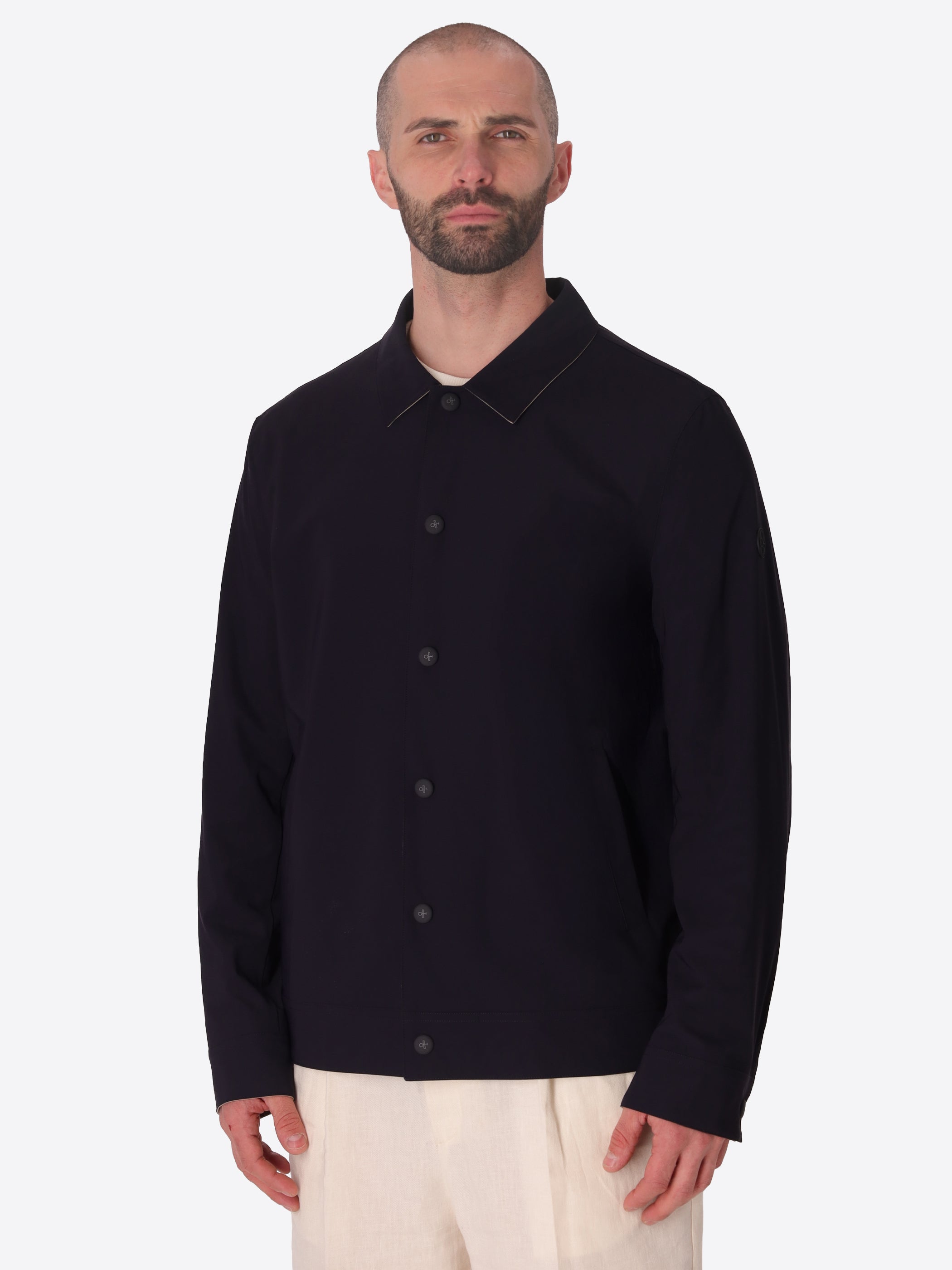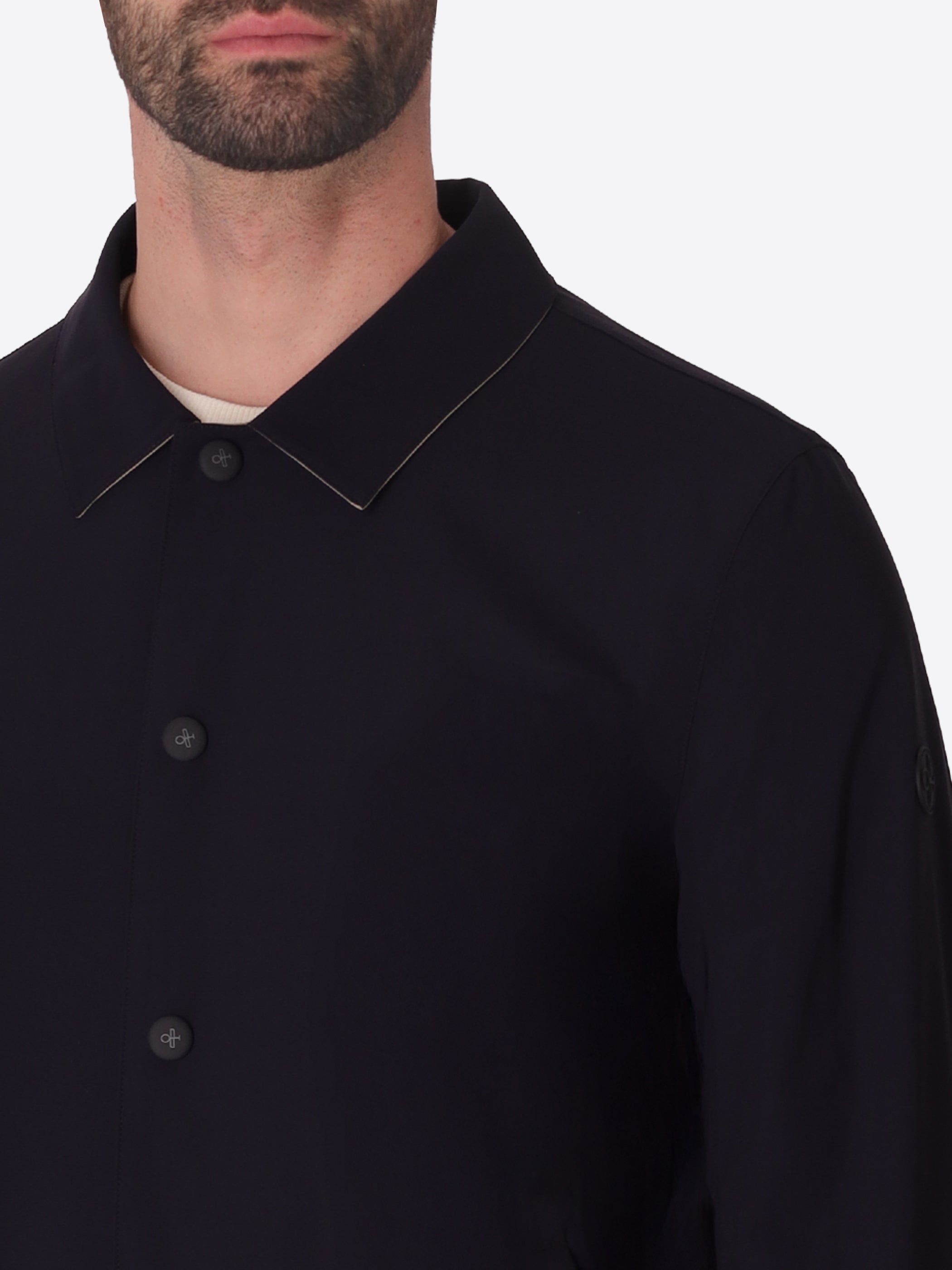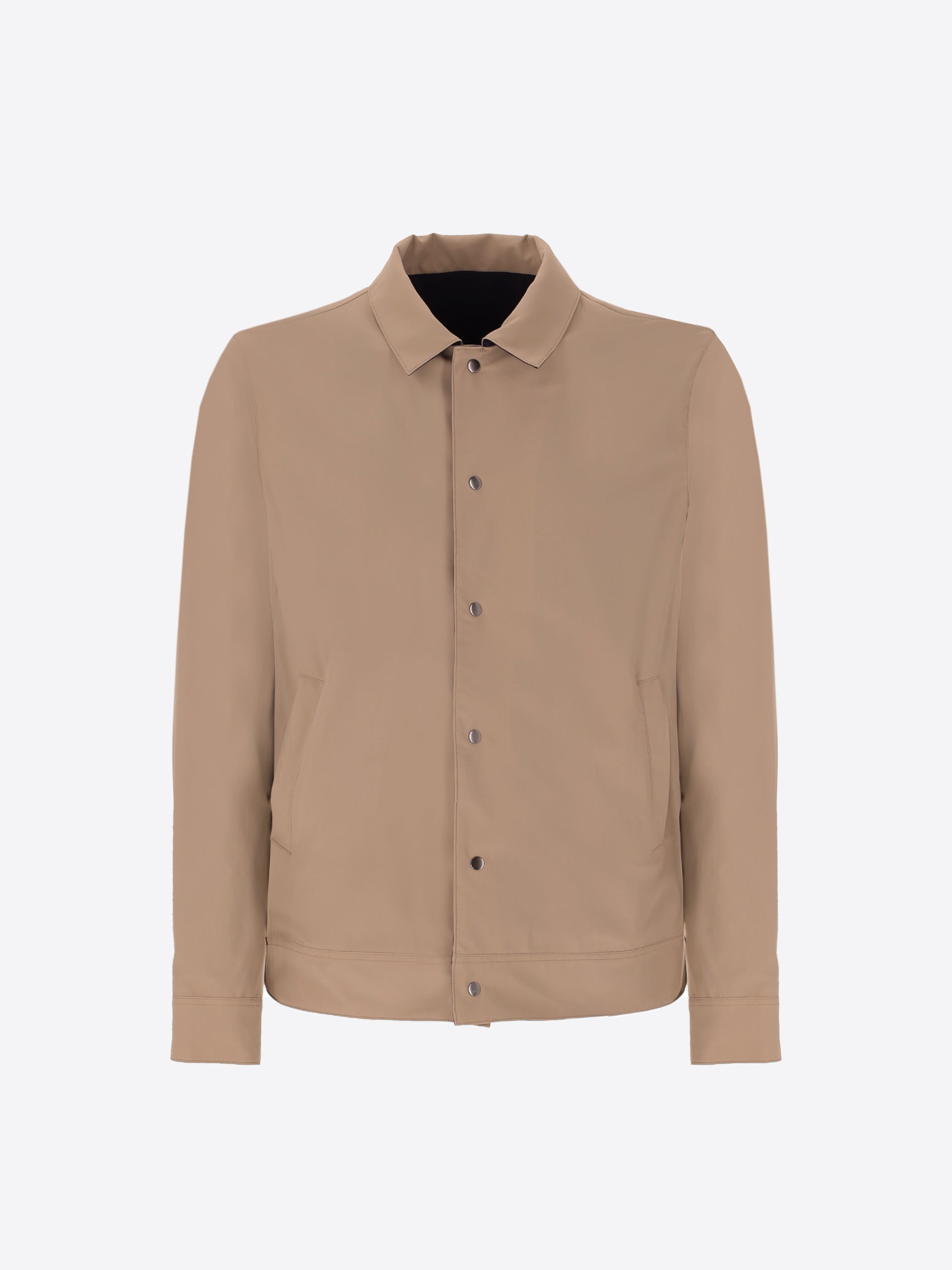Double-Face-Aviatorjacke aus technischem Active-Gewebe mit kontrastierendem Innenlayer. Mit Druckknopfverschluss, Hemdkragen, Hemdmanschetten und Paspeltaschen.