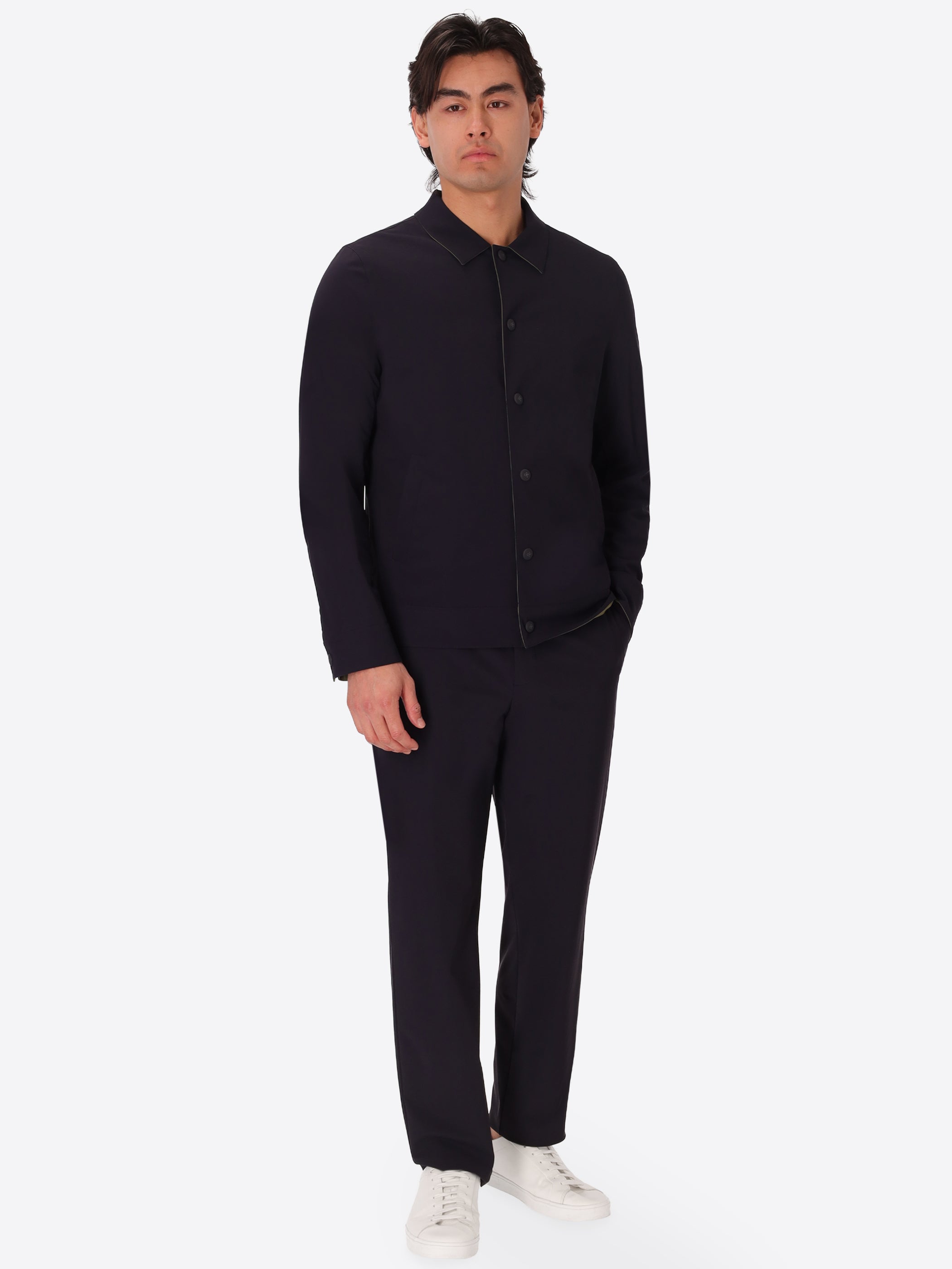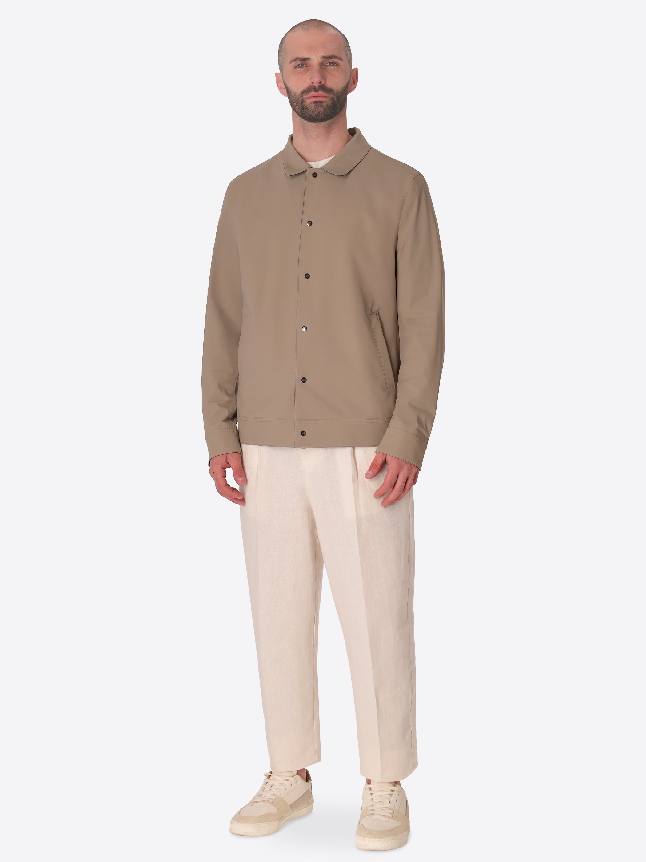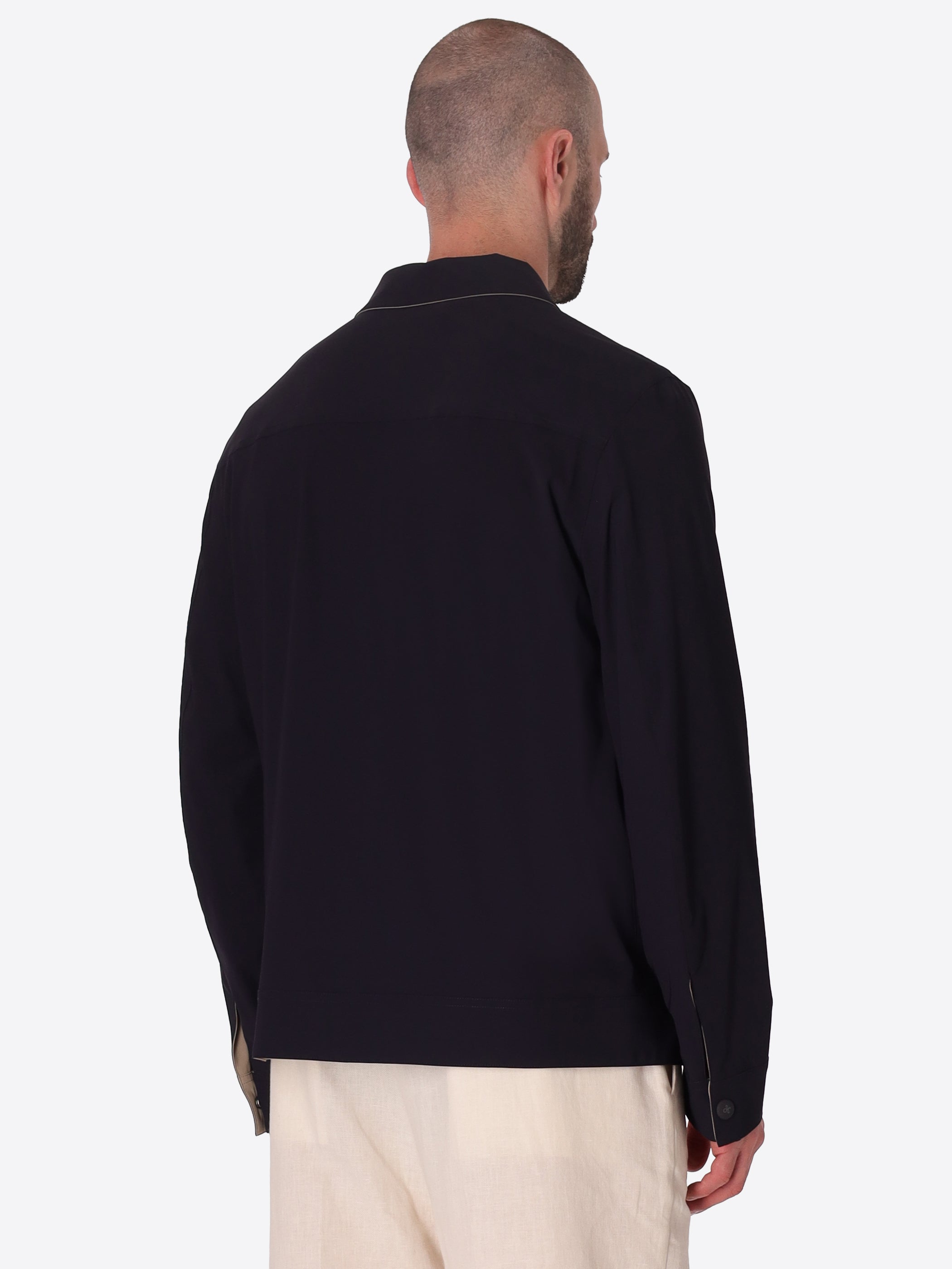 Double-Face-Aviatorjacke aus technischem Active-Gewebe mit kontrastierendem Innenlayer. Mit Druckknopfverschluss, Hemdkragen, Hemdmanschetten und Paspeltaschen.
