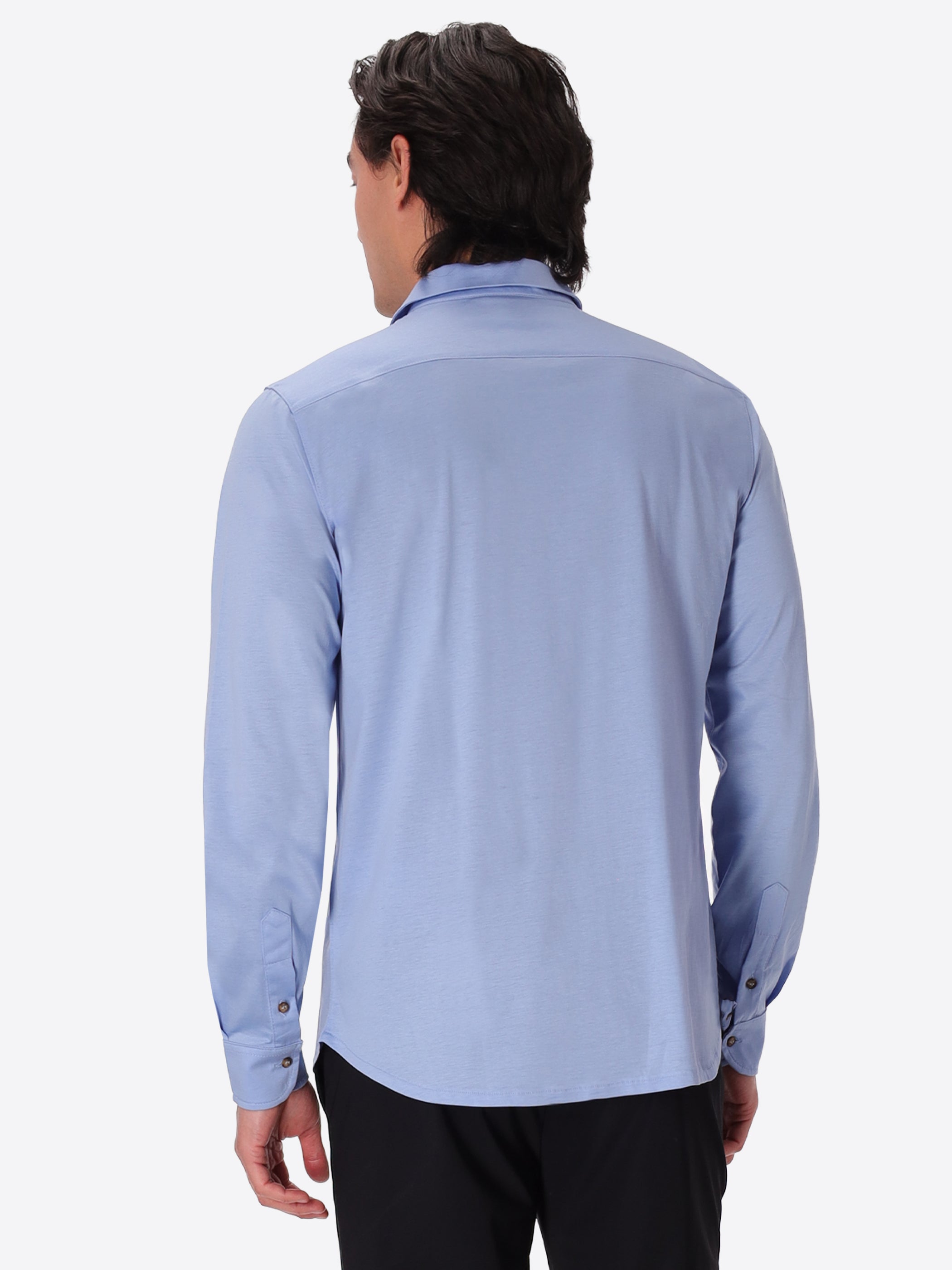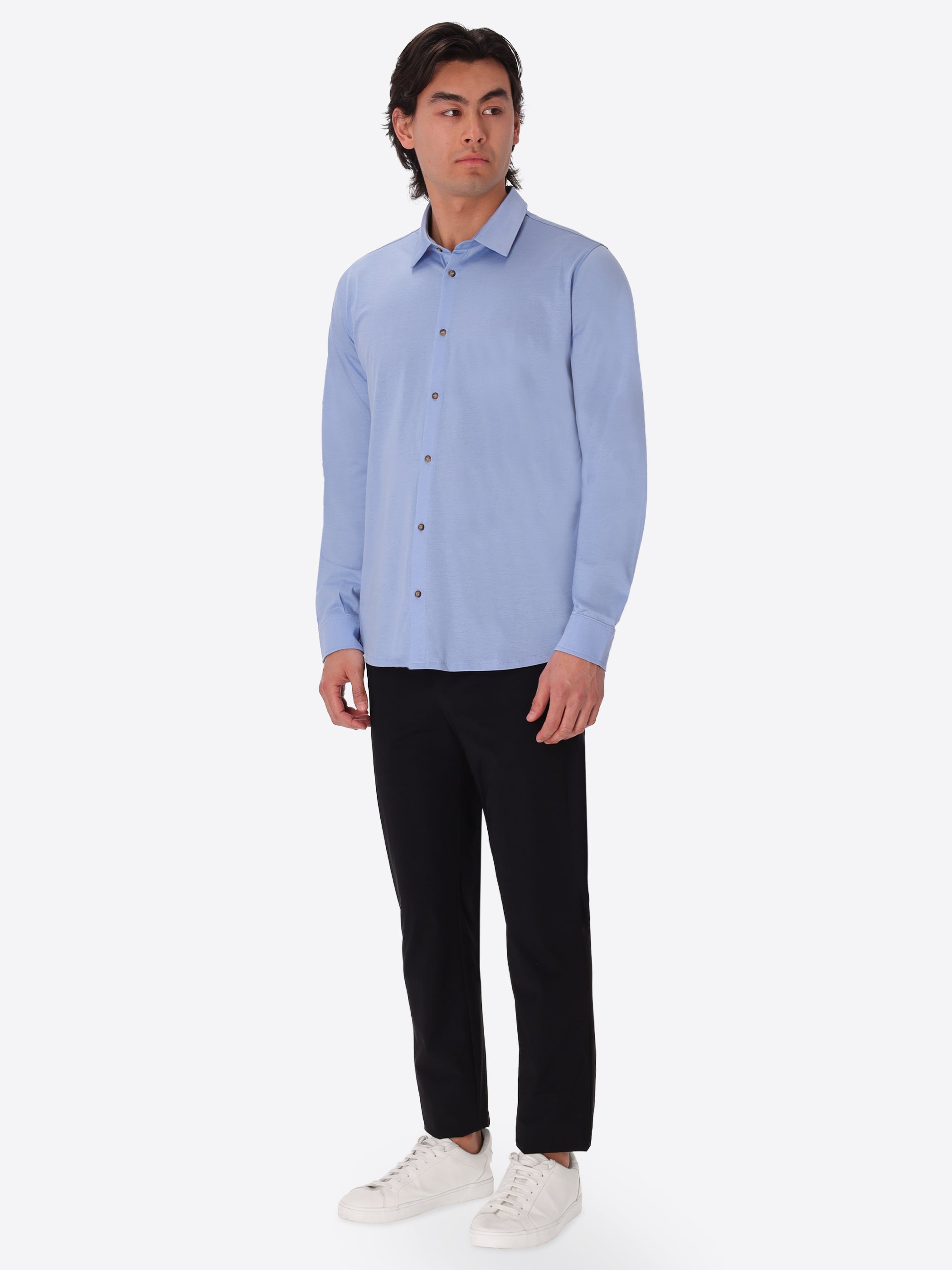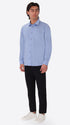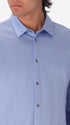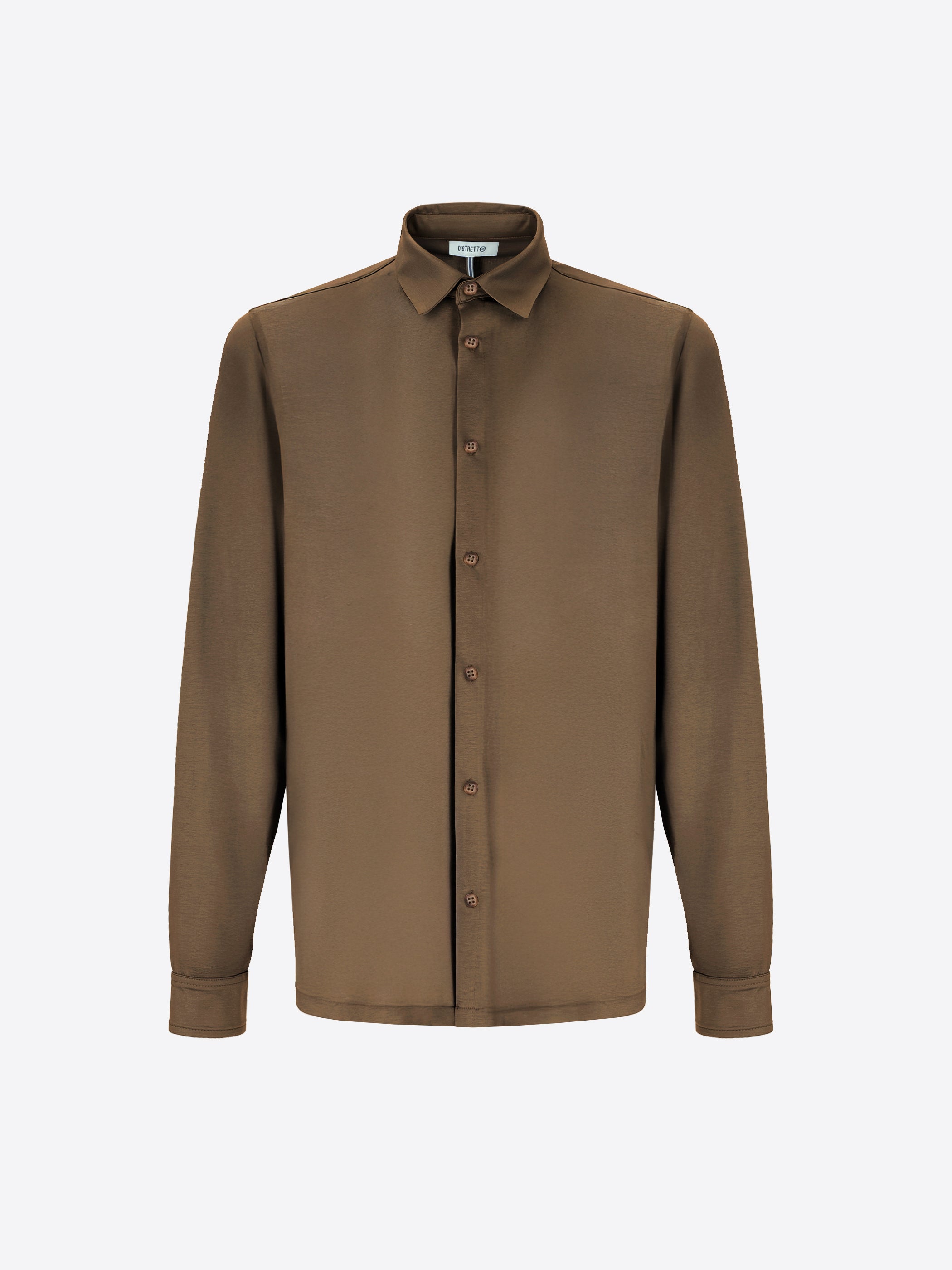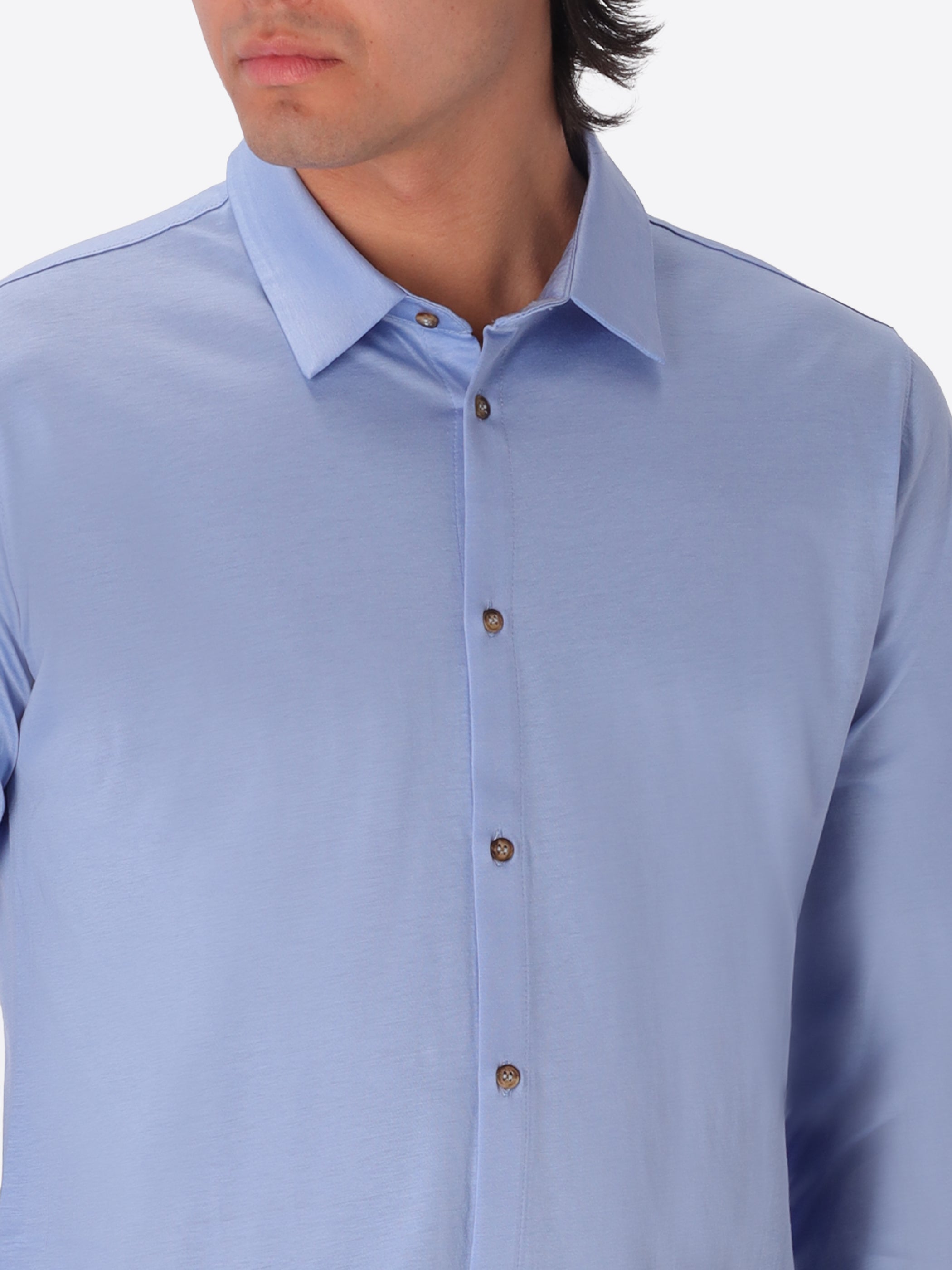 Hemd aus Baumwolle-Modal mit frischem Griff. Mit Segelkragen und zentralem Knopfverschluss. Das Rückenteil ist durch eine Passe definiert und ohne Abnäher am Körper gearbeitet.
