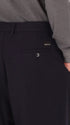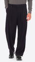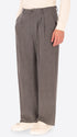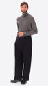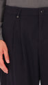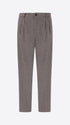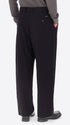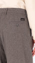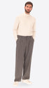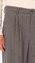 Überweite Hose aus Wollmischflanell. Das Modell verfügt über einen Reißverschluss mit Knöpfen, französische Vordertaschen, Leistentaschen hinten und einen Taillenzug mit Metallknotenschutz. Innen sind Taschenbeutel mit markiertem Futter verarbeitet.