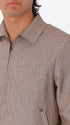 Aviatorjacke aus weichem Leinenmischgewebe mit Metallreißverschluss vorne und Paspeltaschen. Der Rumpf ist ungefüttert mit Baumwoll-Schrägband, die Ärmel sind gefüttert und eine kontrastierende Innentasche ist vorhanden.