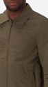 Aviator-Jacke aus technischem wasserabweisendem und atmungsaktivem Baumwoll-Nylon-Gewebe. Mit zentralem Reißverschluss, Segelkragen und Hemdmanschetten. Ausgestattet mit einseitigen Paspeltaschen, kontrastierender Innentasche und vollständig ungefütterter Konstruktion mit kontrastierenden Einfassungen.
