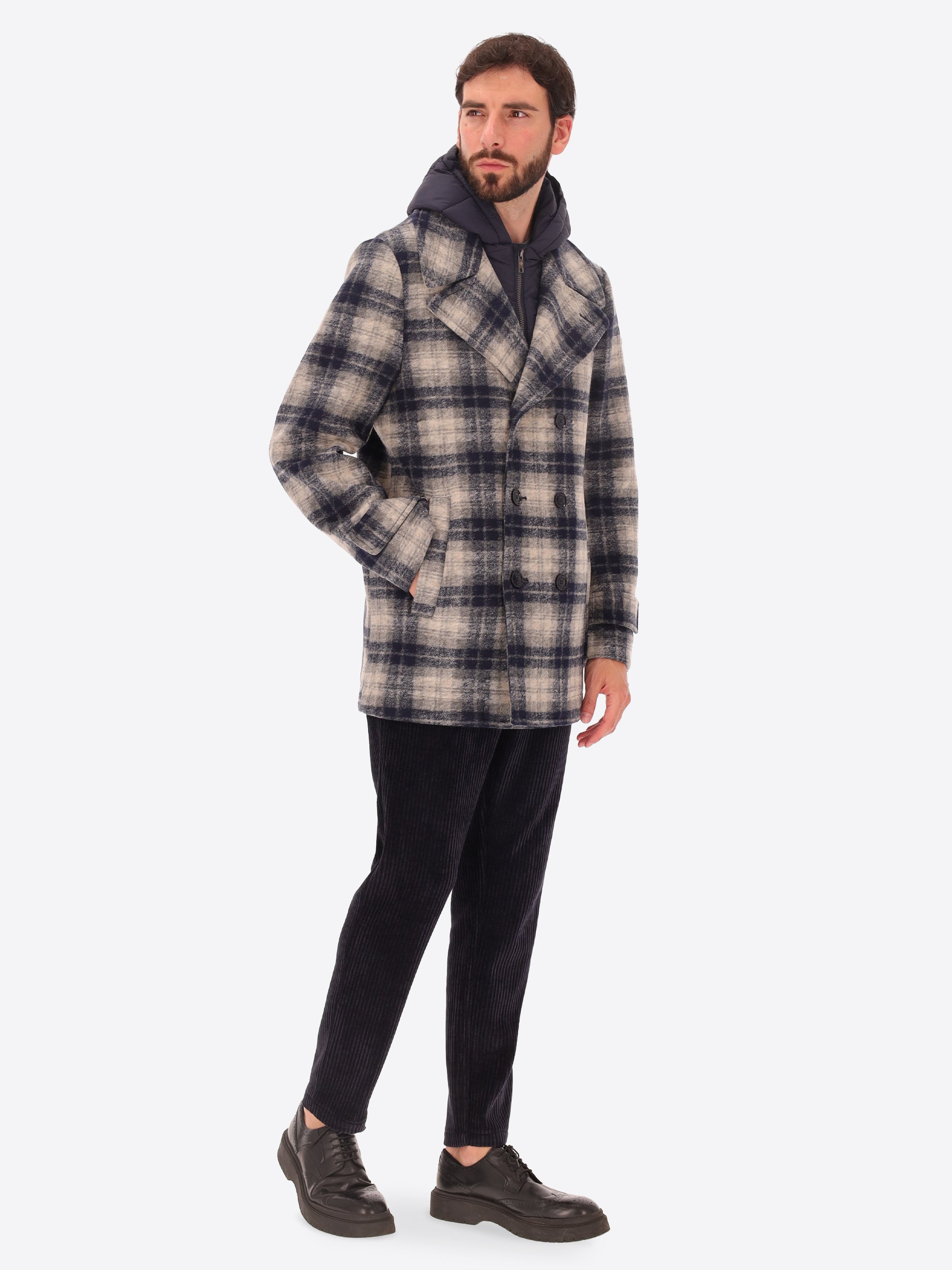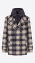 Boiled Wool Peacoat Cambridge with Scottish Check Pattern and Detachable Hood