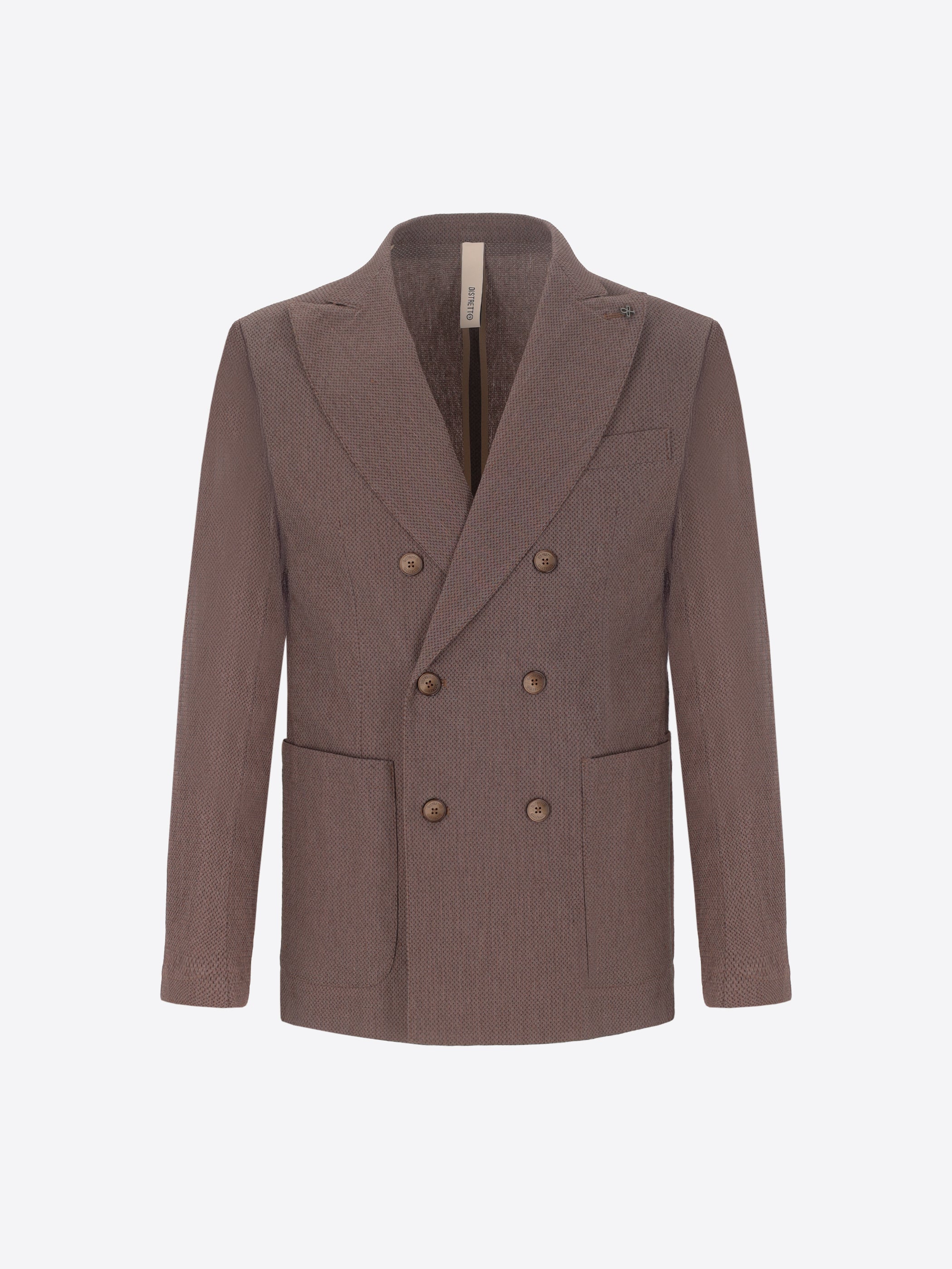 Semi-faconnierte Jacke aus Faster12 Super-Stretch-Gewebe mit geprägter Punktstruktur. Ausgestattet mit einem Doppelreiher-Frontverschluss, aufgesetzten Fronttaschen und einer hohen Brustpaspeltasche. Die Innenseite ist komplett ungefüttert mit Baumwoll-Schrägbandeinfassung und einer kontrastierenden Innentasche, abgerundet durch ein steigendes Revers.