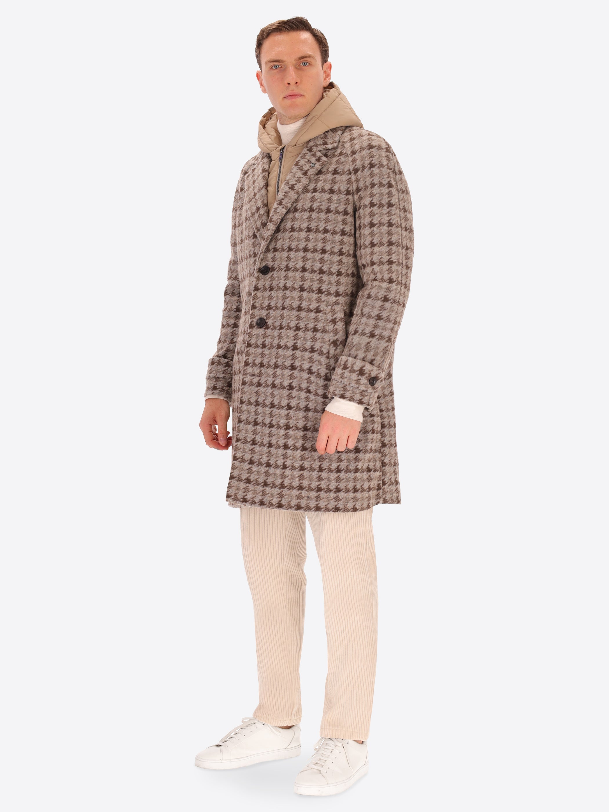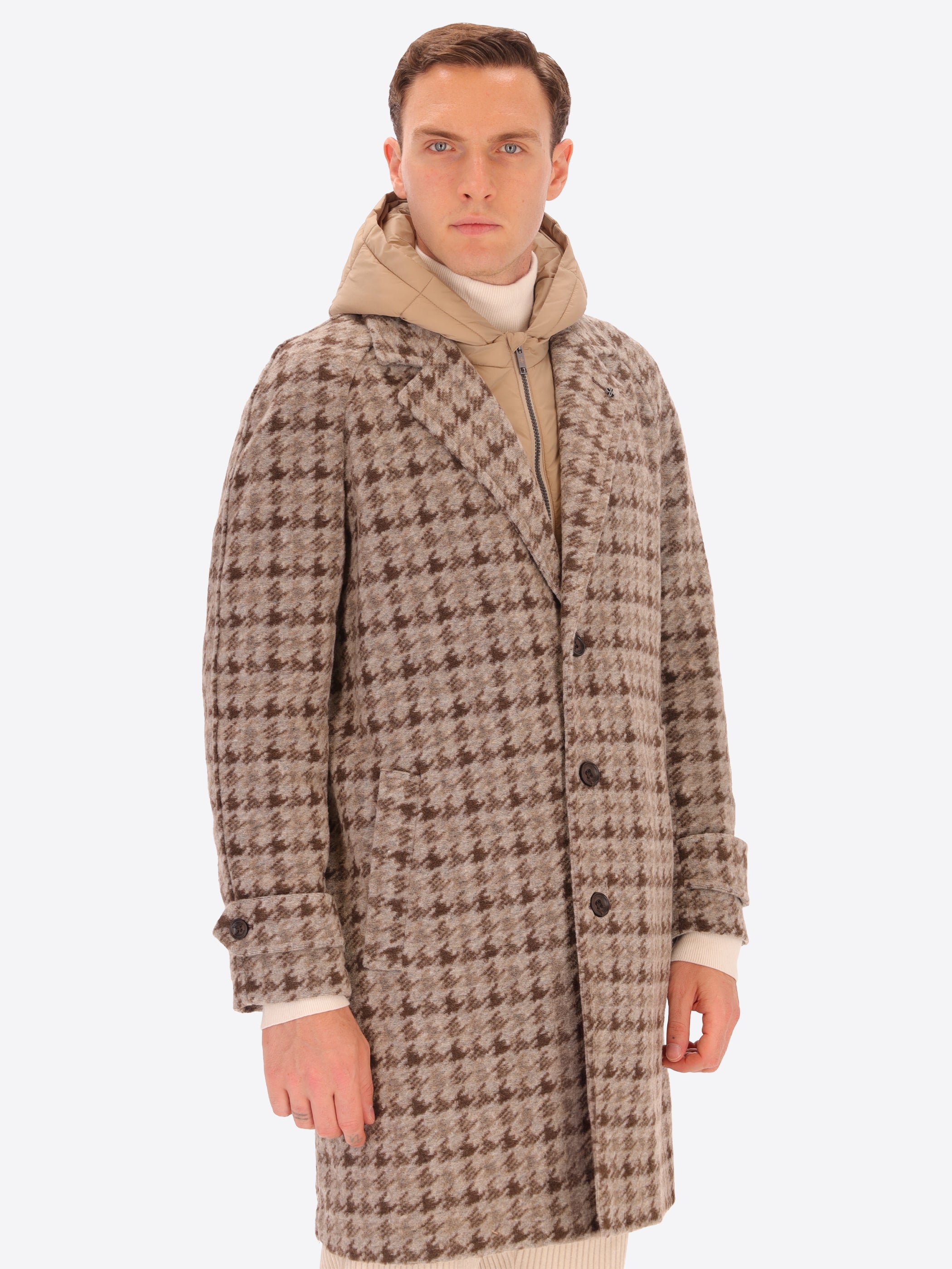 Cardiff Raglanmantel aus Nadelvlies-Wollmischung mit Hahnentrittmuster und Abnehmbarem Kapuzen-Einsatz