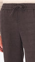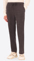 Relax-fit trousers in super-comfort warm-hand jersey fabric. The garment features a zip and button closure, two front pockets, back welt pockets, and a drawstring for waist adjustment. The interior has pocket bags in lined fabric.