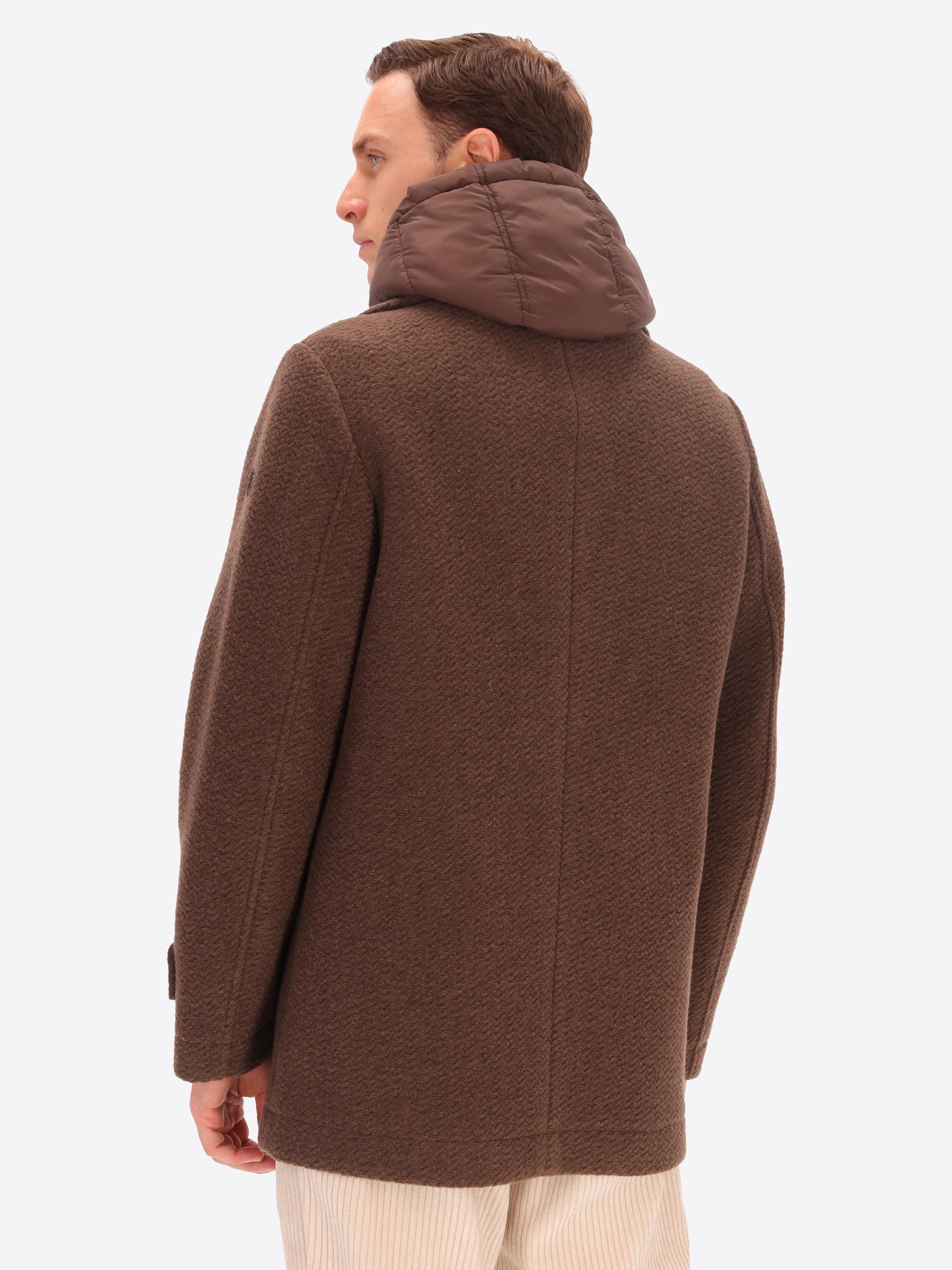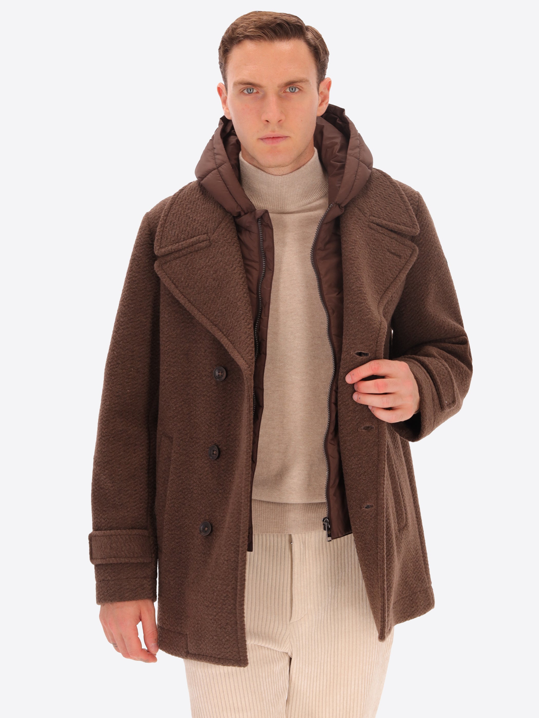 Boiled Wool Blend Peacoat Preston With Detachable Hood