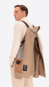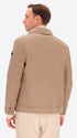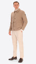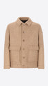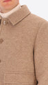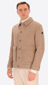 Aviator jacket in boiled wool bonded with jersey and neoprene, featuring a buttonhole and button closure, shirt collar, shirt cuffs, two patch pockets with flaps, and an unlined body with contrast edges and an internal Milano stitch pocket. Internally, there are two detachable elastic straps with logo.