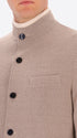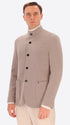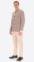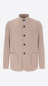 Jacket in textured fabric with dot pattern, super comfort and warm touch. The garment has a central button opening, two patch front pockets, a breast patch pocket, a Mandarin collar, an unlined body with contrast edges while the sleeves are lined, and an internal pocket in technical jersey Milano stitch.