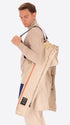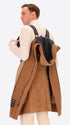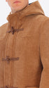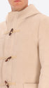 - Front opening with zip and wooden toggles