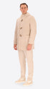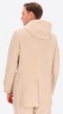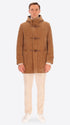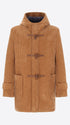 Montgomery in French ribbed velvet combined with jersey and super-comfort neoprene. The garment features a front opening with zip and wooden toggles, two welt pockets, and an unlined interior with contrasting edges and a Milano stitch jersey inner pocket. The hood is lined with a contrasting padded quilt. Inside, there are also 2 detachable elastic braces with logo.