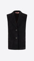 Over vest in French corduroy velvet, bonded with jersey and super comfort neoprene. The garment features a front opening with buttons, two flap pockets, and an unlined body with contrast edges.
