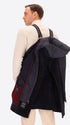 Peacoat in French ribbed velvet combined with jersey and super-comfort neoprene. The garment features a double-breasted closure with buttonholes and buttons, two welt pockets, and an unlined interior with contrasting edges and a Milano stitch jersey inner pocket. Inside, there are also 2 detachable elastic braces with logo. In addition, the coat has a detachable padded nylon bib with hood.