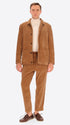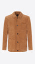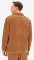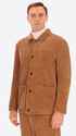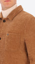 Shirt jacket made from super-comfort velvet fabric with French rib. The garment features a central button closure, two front patch pockets, a third patch pocket on the chest, a shirt collar, cuffs with one button, unlined body with contrast edges, lined sleeves, and a technical Milano jersey inner pocket.