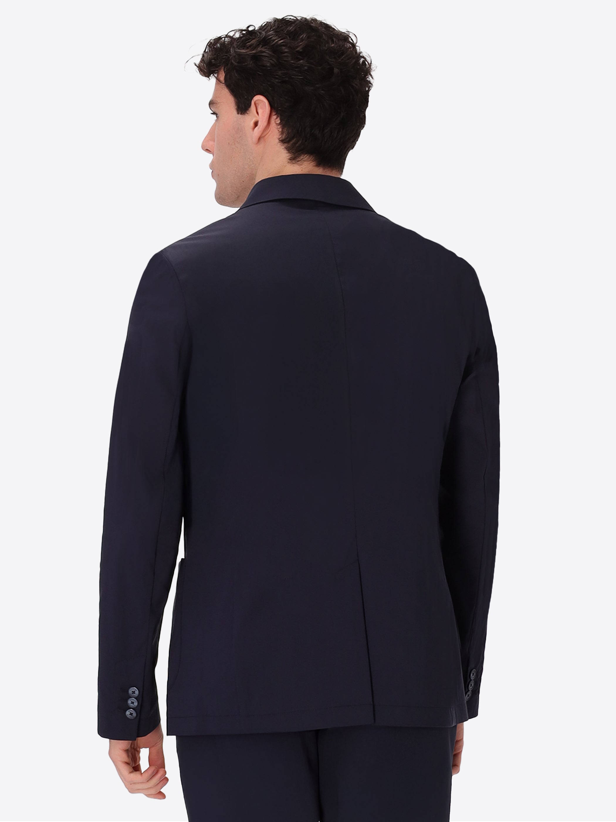 Single-breasted jacket crafted in ultralight cotton-nylon blend fabric, featuring a two-button front closure, front patch pockets and a welt chest pocket. The interior is fully unlined with cotton bias binding and a contrast inner pocket.