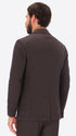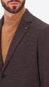 Jacket made from super-comfort jersey fabric with micro-pattern design. The garment features a central button closure with buttonholes, two front patch pockets, a welt chest pocket, unlined body with contrast edges, lined sleeves, a technical Milano jersey inner pocket, and a central back vent.