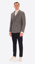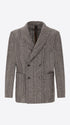 Double-breasted jacket in wool blend fabric with multi-stripe design. The garment features a double-breasted opening with buttonholes and buttons, two patch pockets on the front, a welt pocket on the chest, an unlined body interior with contrasting edges while the sleeves are lined, an inner pocket in Milano stitch technical jersey, and a single back vent.