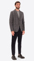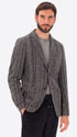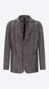 Jacket in wool blend fabric with multi-stripe pattern. The garment features a central opening with buttonholes and buttons, two patch front pockets, a welt breast pocket, unlined body with contrast edges, lined sleeves, an internal pocket in Milano stitch technical jersey, and a central back vent.