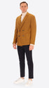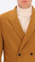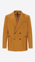 Double-breasted jacket in solid/melange mixed wool fabric. The garment features a central double-breasted button and loop closure, two patch front pockets, a chest patch pocket, and an unlined body with contrast trims while the sleeves are lined, with an internal technical jersey Milano pocket.