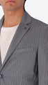 Single-breasted jacket crafted in technical jersey with stripe print. Featuring a two-button front closure, front patch pockets and a welt chest pocket. The interior is fully unlined with cotton bias binding and a contrast inner pocket.
