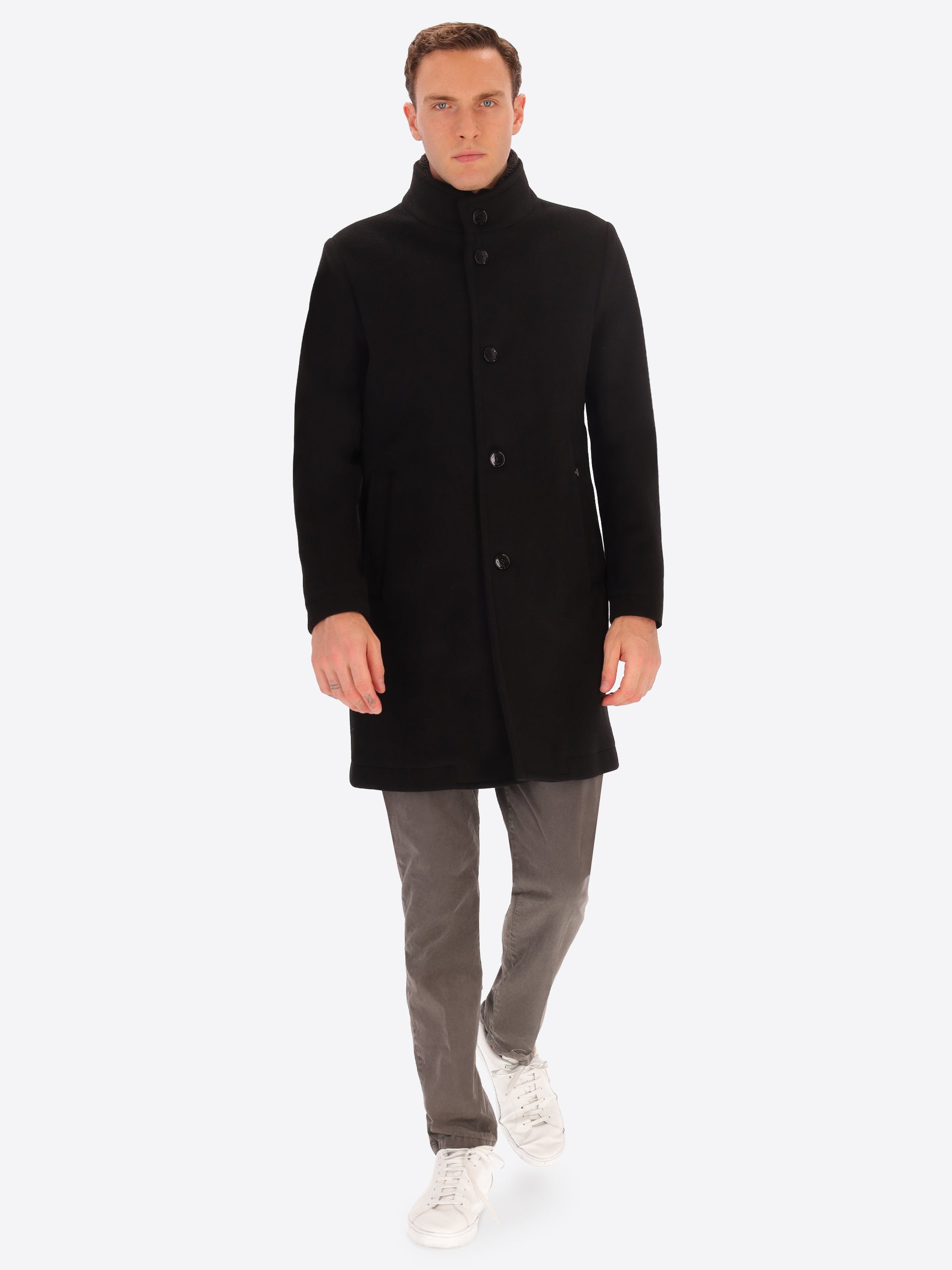 Super-Comfort Wool-Blend Coat Manchester with Detachable High-Collar Insert