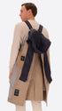 Cappotto in lana cotta accoppiata con jersey e neoprene, apertura a 3 bottoni, due tasche a fi letto e corpo completamente sfoderato con bordi a contrasto e tasca interna in punto Milano. Internamente sono presenti due bretelle elastiche staccabili con logo. Il capo presenta inoltre una pettorina con cappuccio in nylon imbottito staccabile e uno spacco centrale sul retro.