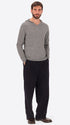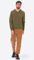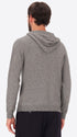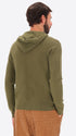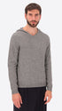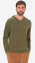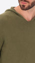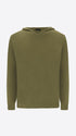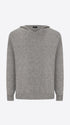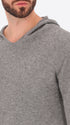 Maglia con cappuccio tinto in capo con lavorazione rasata finezza 7 in filato misto viscosa. Il capo si presenta con un cappuccio, polsi e fondo in costina.
