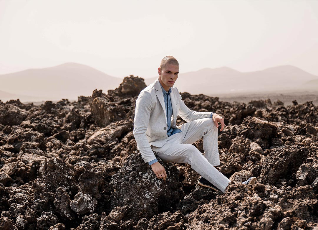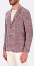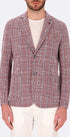 Giacca monopetto in tessuto con trama chicco di grano super stretch con stampa principe di Galles. Il capo presenta il sotto collo in effetto denim, un’ abbottonatura frontale, delle tasche frontali a toppa ed un taschino alto a pistagna. L’interno è sfoderato con bordi a contrasto ed una tasca in nylon. Revers dentellato.
