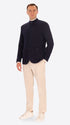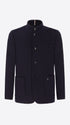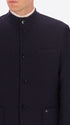 Giacca in tessuto maglia mano calda super comfort. Il capo presenta un’apertura centrale con asole e bottoni, due tasche frontali a toppa, un taschino a pistagna sul petto e il colletto alla coreana. L’interno corpo sfoderato con bordi a contrasto mentre le maniche sono foderate, una tasca interna in jersey tecnico punto Milano.